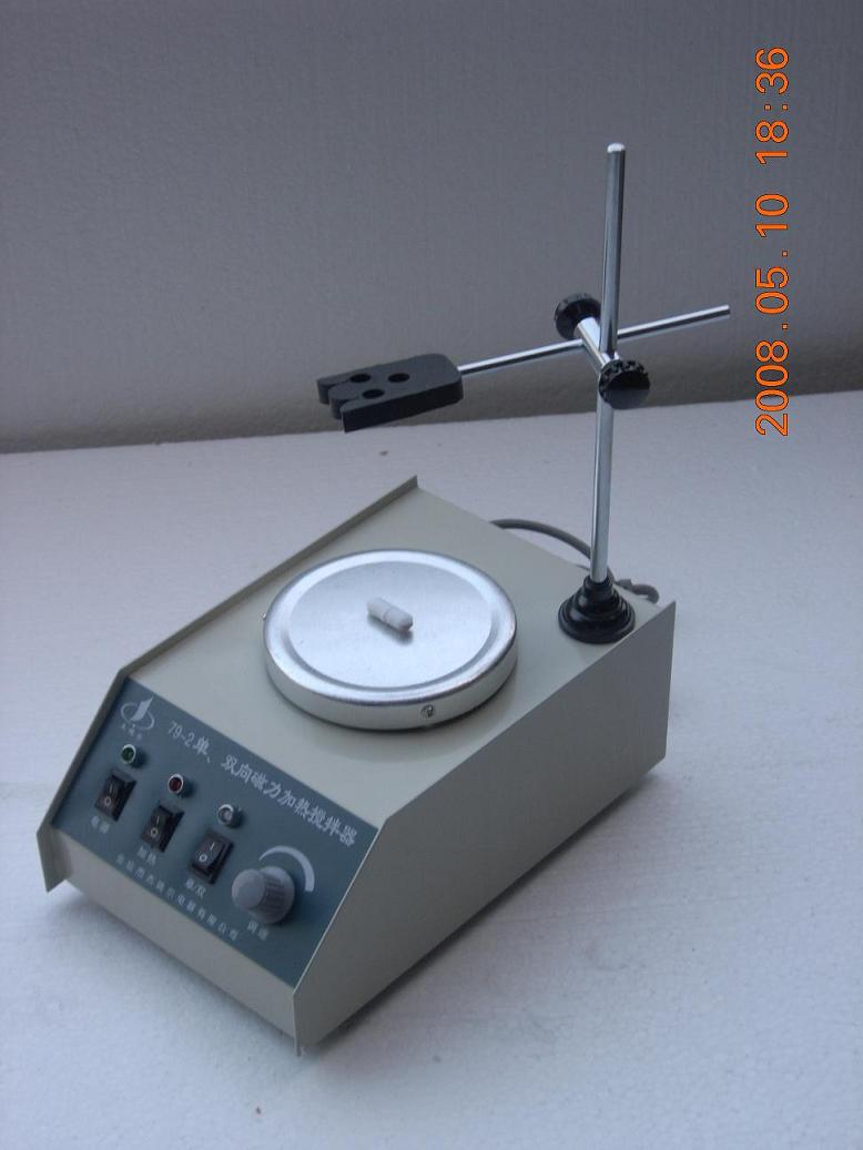 79-2型双向磁力加热搅拌器 机能: 1. 电 源: 单相交换50HZ 220V+10V 2. 机电 功率: 25W 40W 3. 加热丝功率: 150W 200W 4. 正反向任务时候各为 30秒 5. 无及调速: 0-1600转/分可调 搅拌容量1000ml, 加热功率200W, 调速规模0-2400转/分,正反标的目的任务